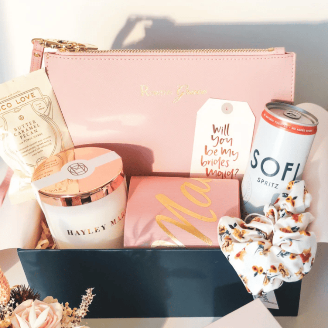 Imagine the joy on their faces as they unwrap a gift that’s crafted just for them, filled with carefully chosen items that say, “Thank you for standing by my side.” Whether you’re asking them to join your bridal party or celebrating their support on the big day, our hampers are designed to capture the magic of these unforgettable moments.
